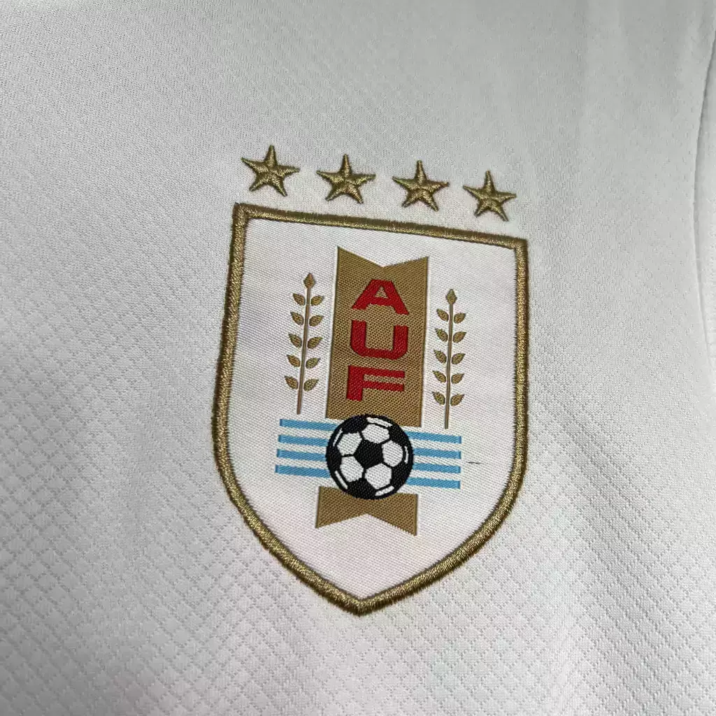 Com gola redonda bicolor, punhos em azul celeste e o escudo da AUF no lado esquerdo do peito, a camisa reserva da Seleção Uruguaia exala a história e a glória do time. O logo da Nike em preto no lado direito e a numeração nas costas completam o visual com um toque moderno.