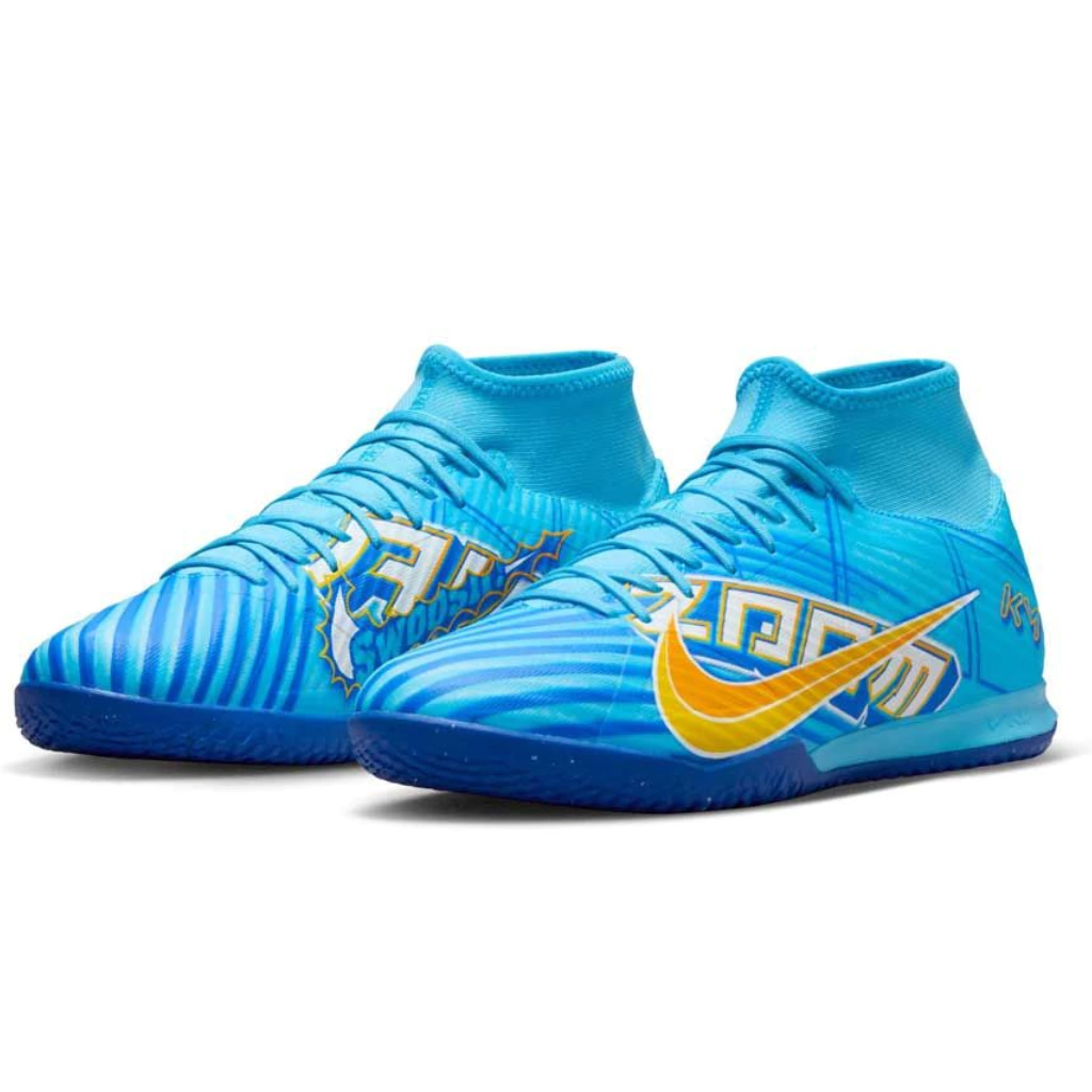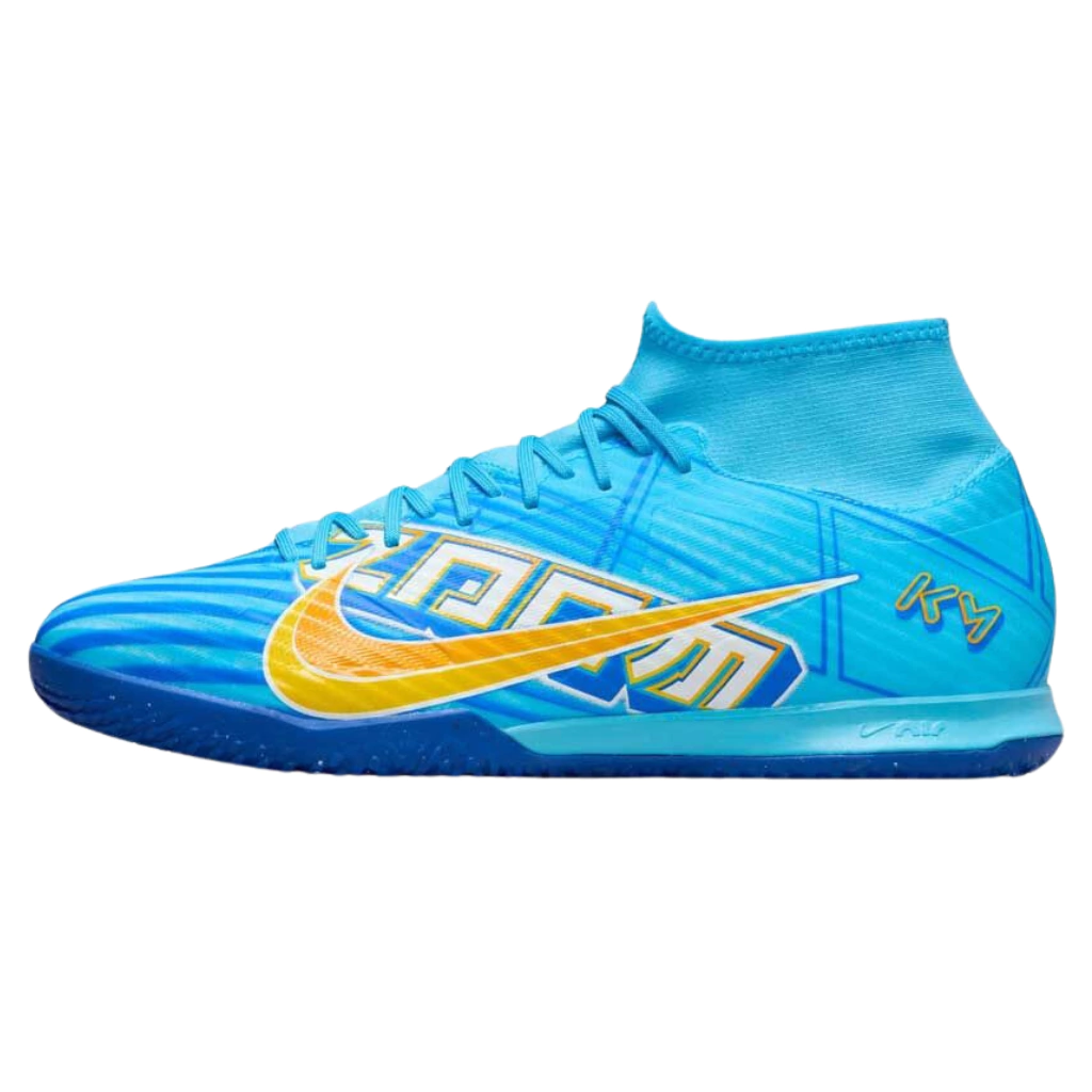 Sonhe em ter a velocidade explosiva e o controle de bola de Kylian Mbappé? Agora você pode! A chuteira Nike Zoom Mercurial Superfly 9 Academy IC X Mbappe foi feita para jogadores de futsal que buscam dominar a quadra com agilidade e precisão. Inspiradas no estilo de jogo alegre de Mbappé, essas chuteiras apresentam detalhes de design e cores que homenageiam sua herança.