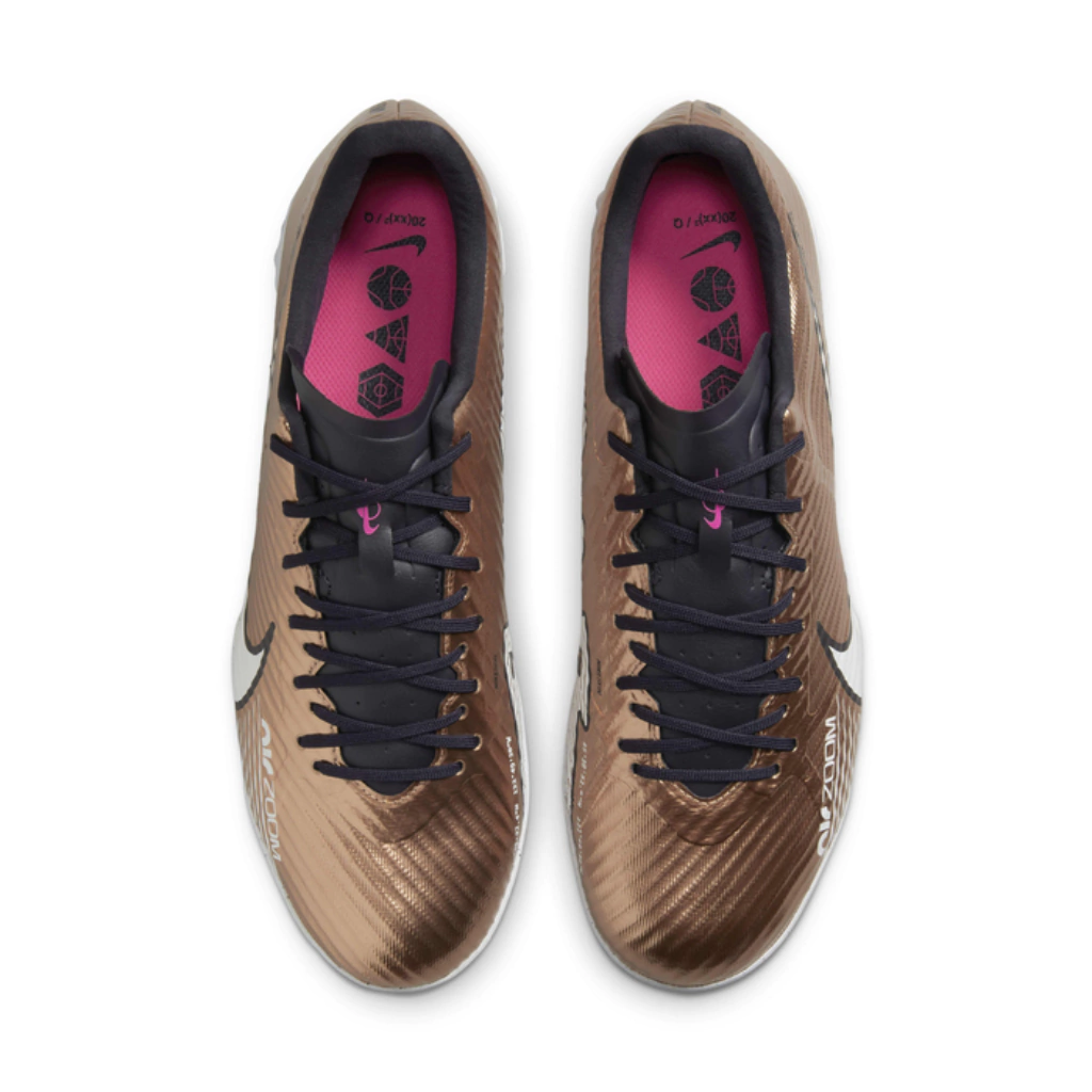 Chuteira Nike, Society, Air Zoom, Mercurial Vapor, 15 Academy, TF, Generation, Marrom, Preto, Branco, Rosa, Futebol, Grama Sintética, Domínio, Velocidade, Agilidade, Controle de Bola, Design Futurista, Tevo Sports.
